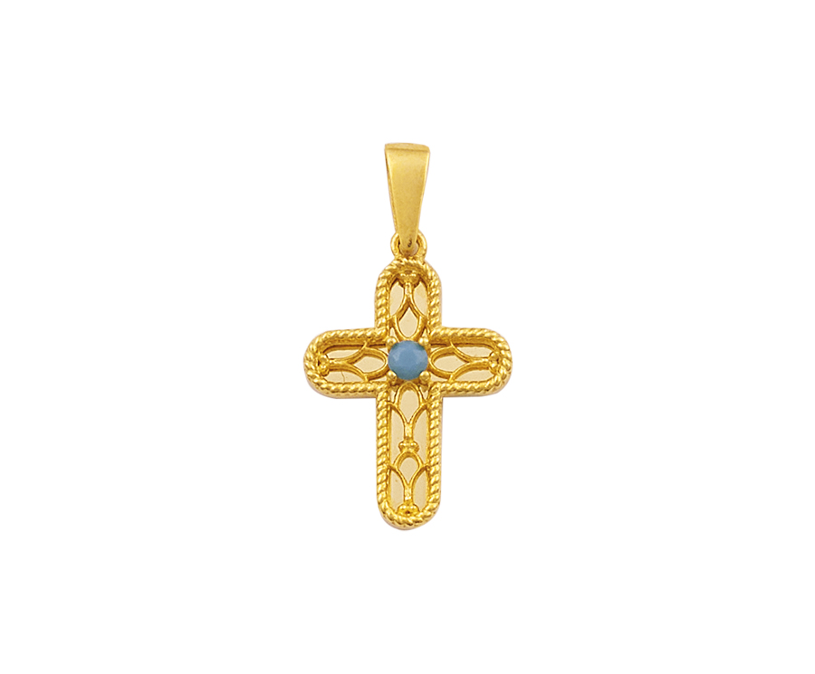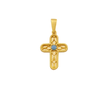 0,80 gr Xρυσο σταυρουδακι Κ14 με τιρκουαζ πετρα