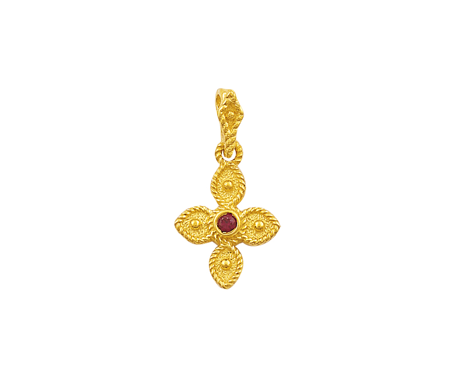 0,80 gr Χρυσο σταυρουδακι Κ14 με κοκκινη πετρα