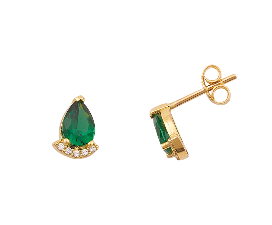 1,60 gr Χρυσα σκουλαρικια Κ14 με πρασινη πετρα