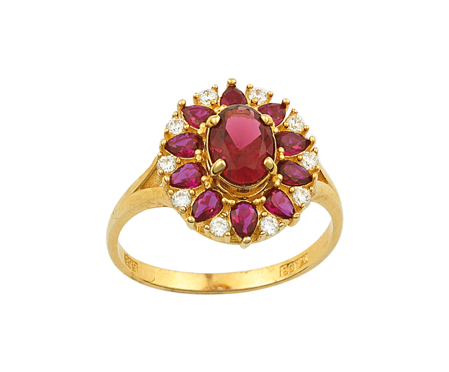 3,10 gr Χρυσο δαχτυλιδι Κ14 με κοκκινες πετρες