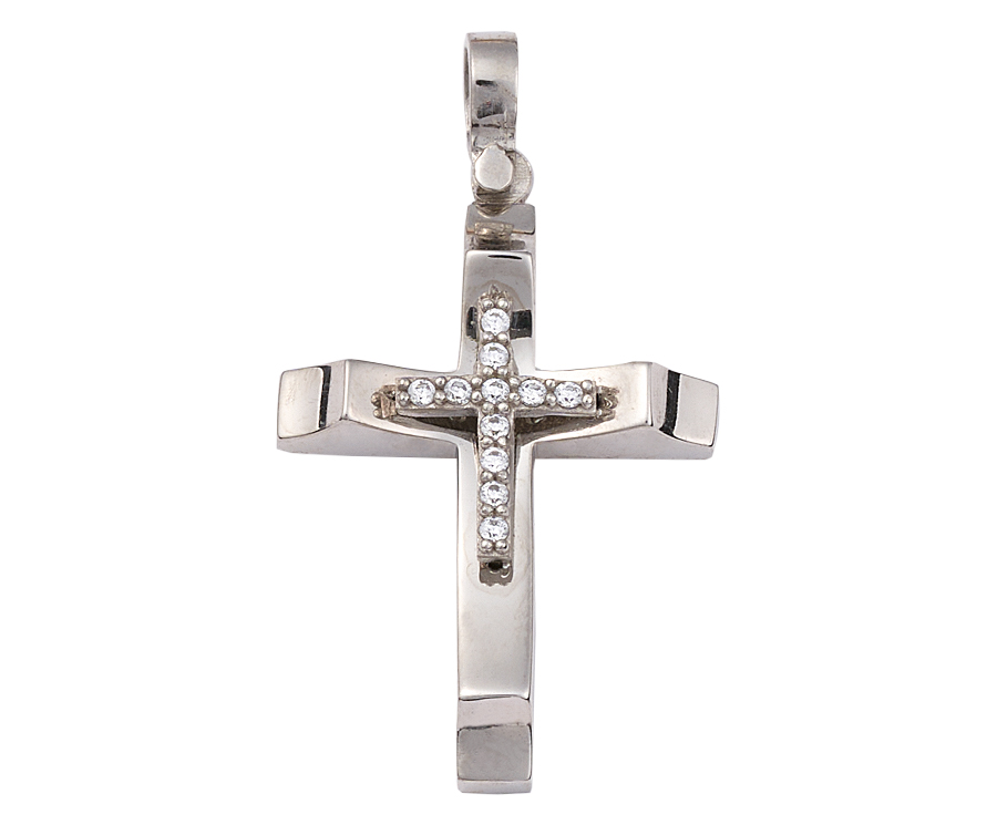 (en) Χρυσος σταυρος Κ14 με λευκες πετρες